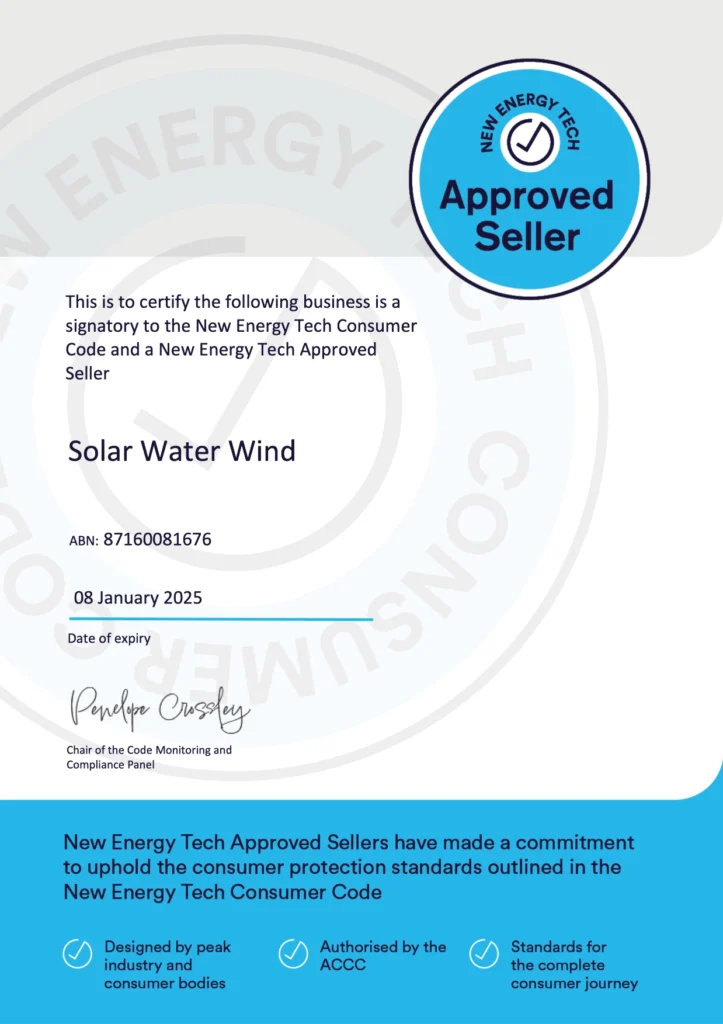 We’re proud to display the New Energy Tech approved seller badge as well as our Clean Energy Council Accreditation which provides peace of mind for our customers knowing they are dealing with a reputable and accredited solar company.